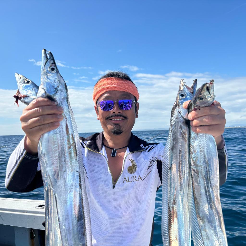 2025年10月06日釣果アジ釣り、タチウオ釣り 今日はチャーターで出船しました!毎回本当に面白い方達で、今回も最初から笑いっぱなし(≧∇≦)デカアジも今日はボチボチ釣れて、皆さん喜んでくれました!イナダの活性が非常に高く、結構な数釣れました(・・;)カンパチも2匹釣れたので、そろそろ泳がせの始まりかな?太刀魚は今日も活性が高かったですが、先日のスーパー入れ食いの後だけに、ちょっと物足りない感じでしたが、終わってクーラーボックスを見たら、F4〜F6が結構入ってました(^^;;本日はお疲れ様でした!またのご利用お待ちしております!レッドブル&お魚ありがとうございました♪♪