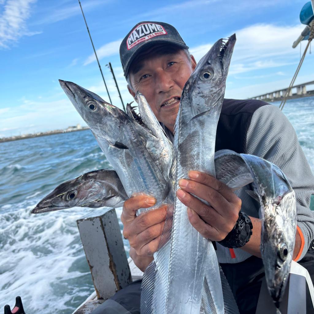 2025年10月21日釣果白甘鯛からタチウオ 今日は、新規さん&常連さんをご案内しました!久々の白甘鯛は大撃沈(T . T)(T . T)小型の顔を見ただけでリリース…(-。-;元気に泳いで帰りました(^^;;アジ、サバは割と活性がある感じで、ポツポツと釣れました。太刀魚は昨日の活性は無く、ポツポツと釣れる程度でしたが、中盤からは群れが固まって連発!天秤エサ釣りの方も数人居ましたが、エサと仕掛けが合わずに苦戦する方も…(・・;)本日はお疲れ様でした!またのご利用お待ちしております!レッドブル&差し入れありがとうございました♪♪