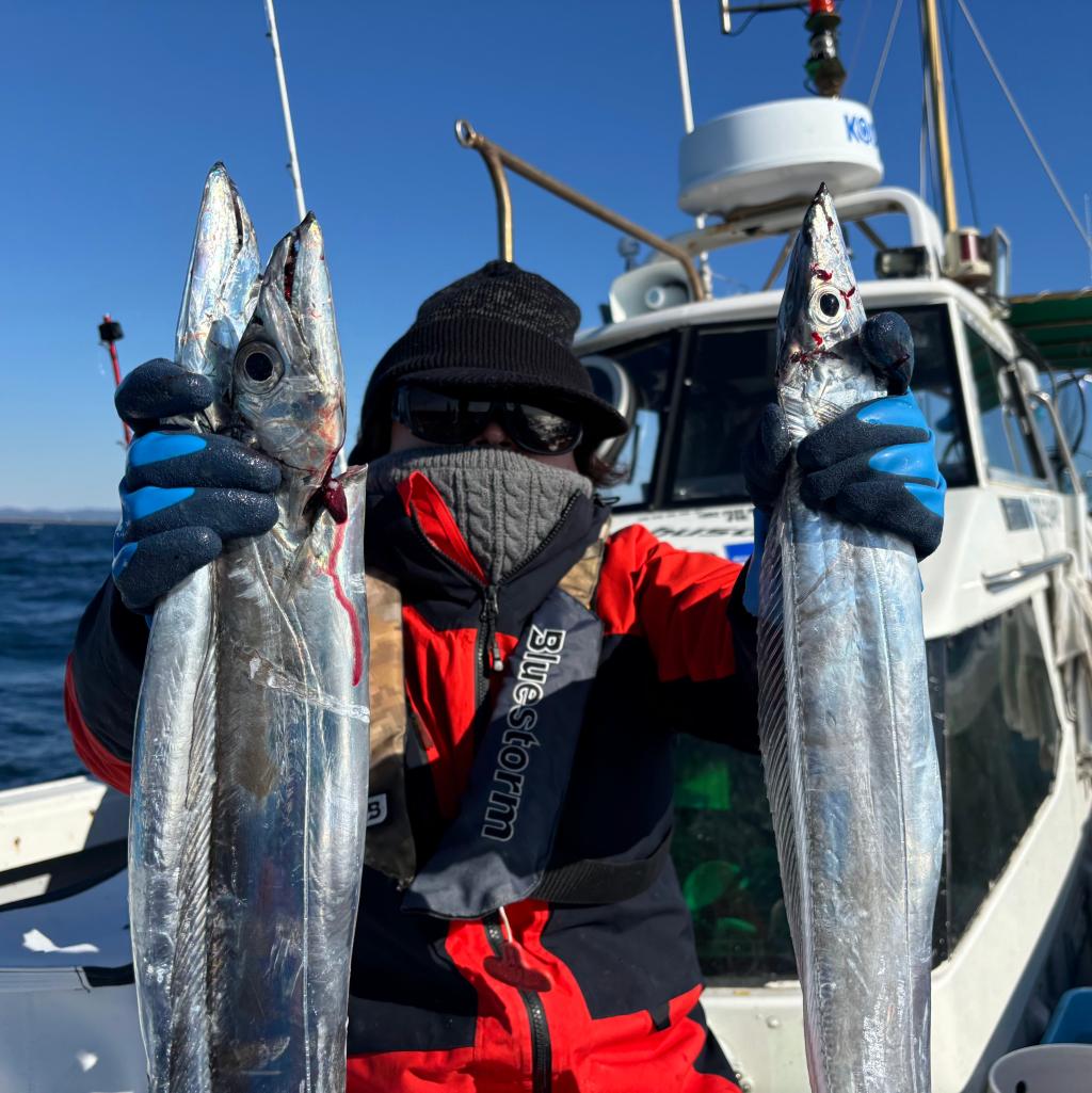 2025年11月21日釣果11/20 アジ釣り、タチウオ釣り 常連さんを乗せて久々に出船しました!アジは反応モリモリでも食い悪かったです(-。-;小アジはポツポツ釣れたので泳がせて、サワラ、カンパチ、ハマチが釣れましたが、青物の活性もイマイチでしたね(・・;)釣り初心者の女の子が、サワラ&カンパチを釣ったのには驚きました(゚o゚;;太刀魚は、途中まで反応少なめでしたが、中盤から群れが固まり連続HIT!ここでも初心者の女の子が大活躍で、バチバチに掛けてくれました♪( ´▽`)今日はサイズも太く、引きを楽しんで頂けました!女の子は写真NGです…。本日はお疲れ様でした!!またのご利用お待ちしております!差し入れ色々とありがとうございました♪♪
