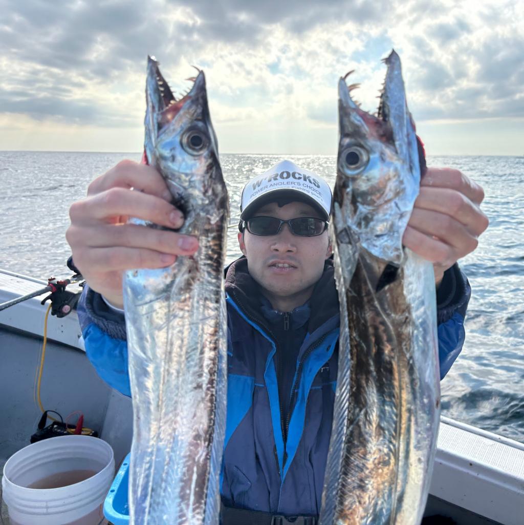 2025年11月23日釣果アジ釣り、タチウオ釣り 朝一は風が残る予報だったので、少し出船を遅らせました(・・;)アジ狙いでしたが、デカサバが先に掛かってしまい、中々思うようにアジが入らなかったですが、途中からデカアジ&中アジの群れに当たり、皆さん上手くお土産釣ってくれました!!太刀魚は最初から良いペースで釣れ続けましたが、後半に群れが消えて捜索…(-。-;群れを再び発見してからは、ボチボチ追加して頂きました♪( ´▽`)今日は、テンヤでもジギングでも、天秤エサ釣りでも良く食いました!!竿頭で30本弱かな…本日はお疲れ様でした!!またのご利用お待ちしております!お魚沢山ありがとうございました♪♪