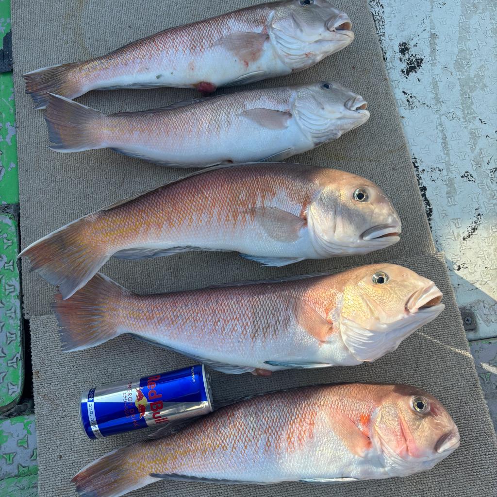 昼から吹かれるか心配でしたが、凪で一日できました!白甘鯛は、釣る人とそうでない人との差が出ました(-。-;仕掛けや誘い方、エサのつけ方で差が出るので、釣れてる方を参考にするのが一番早いかな〜(^^;;釣った人で1kgオーバーを5匹!!小型はポツポツ…(・・;)太刀魚は反応が薄く、釣れても細いのが多かったです…。途中からアジ狙いにシフトしましたが、アジも反応薄く苦戦(T . T)