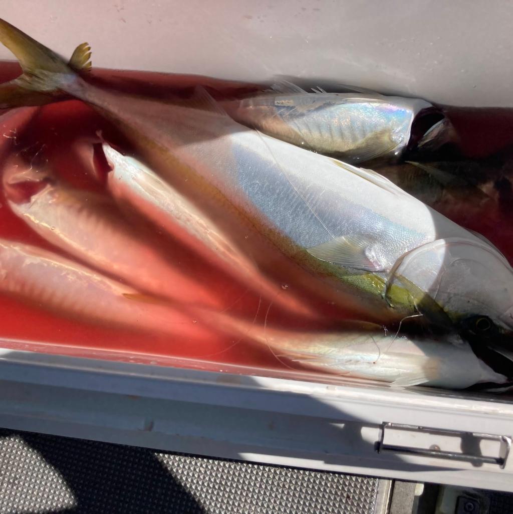 デカアジのアタリは多かったですが、反応の割に連掛けにはならず、毎回1〜2匹の作業となりました。外れる魚も多く、トップの方で25匹くらいかな…途中から小アジを泳がせて、ヒラメ×2、ハマチ×1、ハタ×1でした。何回か大物のアタリありましたが、ことごとくラインブレイク(T . T)